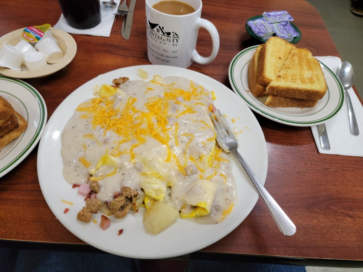 Customers rave about the country fried steak stuffed omelette, a dish that embodies the essence of comfort food. One satisfied patron, Holly Winwood, described her experience as enlightening; not only was she greeted by kind staff but also the rich tapestry of conversation that unfolded during her visit added a personal touch to her meal. The cafe's welcoming vibe is palpable, making it a perfect spot for solo adventurers or families seeking a cozy dining experience.